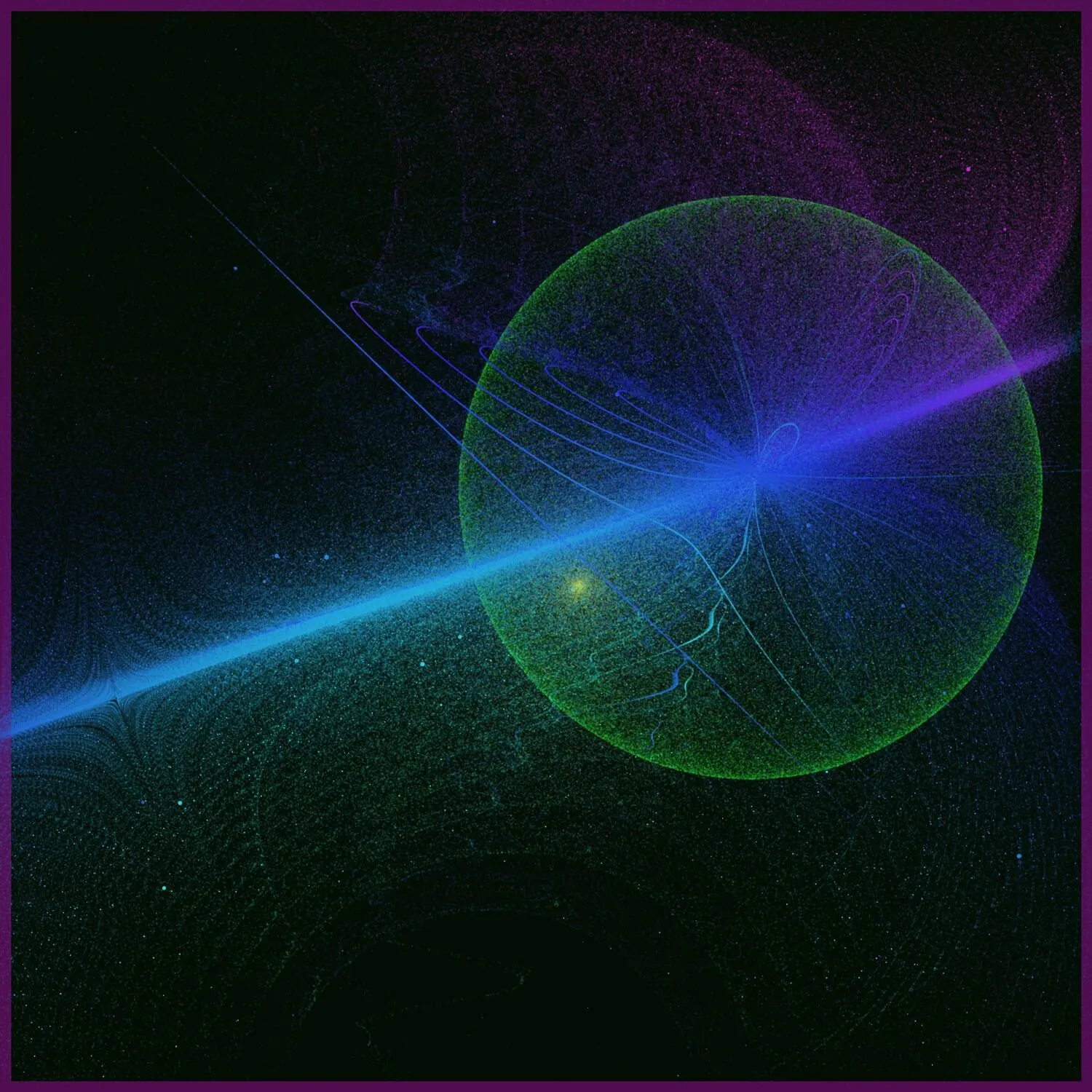 Breathespace is a generative art piece that captures the beauty of the universe in a generative agent based system. Based on thousands of stars and planets in a magnetic field, the system creates the final painting using the organic movements of the stars' trails on the canvas. Each star is attracted or repelled by the planets based on their mass and magnetic power, resulting in a unique, mesmerizing visual experience.