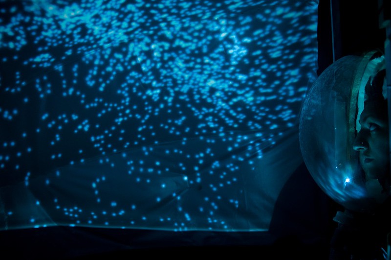 From 2010 : Breathespace project creates Human Computer Interaction (HCI) based on breathing function of the body, which is autonomous, vital and personal. Where the spectator is surrounded by an immersive environment with dome projection and wears a modified mask which measures the breath flow. Then spectator is invited to enter into an image and sound space generated from his/her breathe flow, which includes abstract visual layers containing subtle hints of living organism.