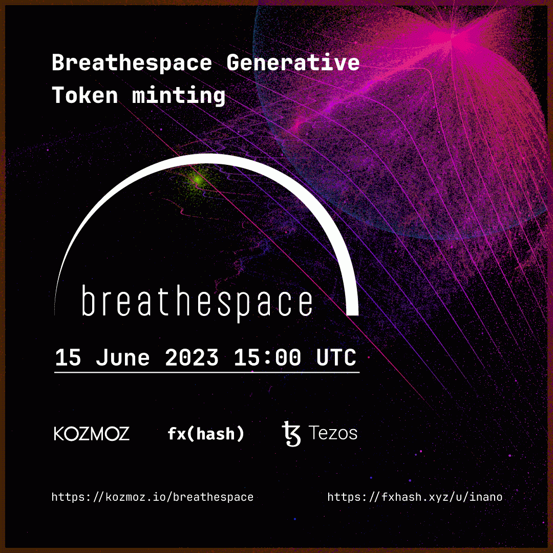 Breathespace is a generative art piece that captures the beauty of the universe in a generative agent based system. Minted on Tezos Blockchain via fxhas.xyz website.