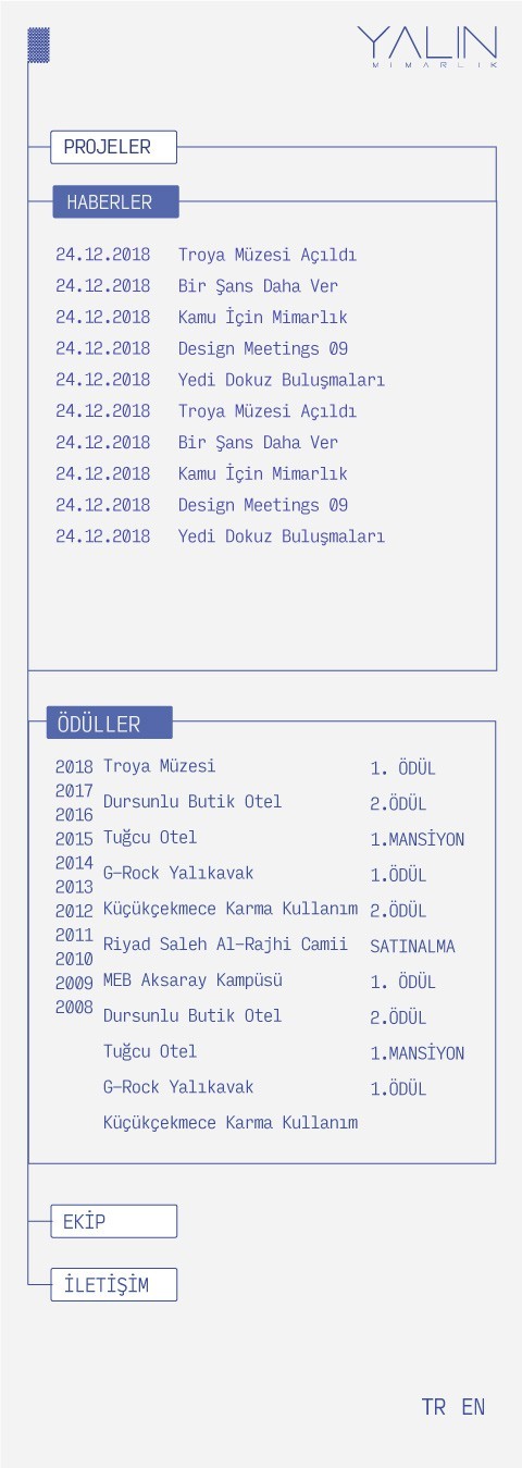 Website concept for UI design and development with KirbyCMS for Yalın Architects